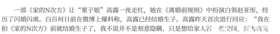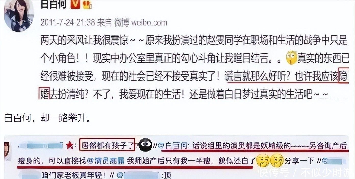 就像她在剧中饰演的角色赵雯一样犀利直接,白百何仅用一条看似随意的微博,便将高露早已结婚并育有一子的事实透露给了公众。