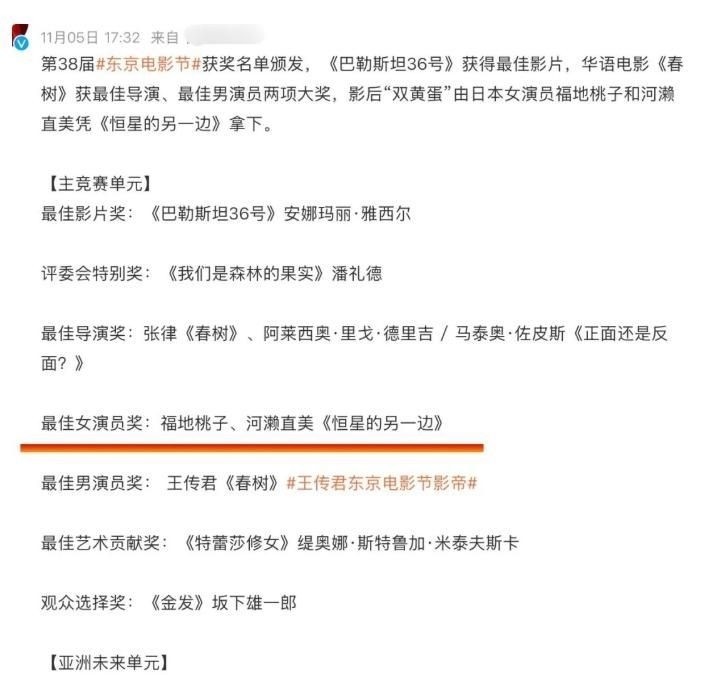 与此同时,热心网友还翻出了完整的入围名单与评委背景资料,结果发现当年的最佳女主竞争极为激烈,最终获奖者福地桃子与河濑直美均来自日本本土,兼具艺术成就与地域优势。